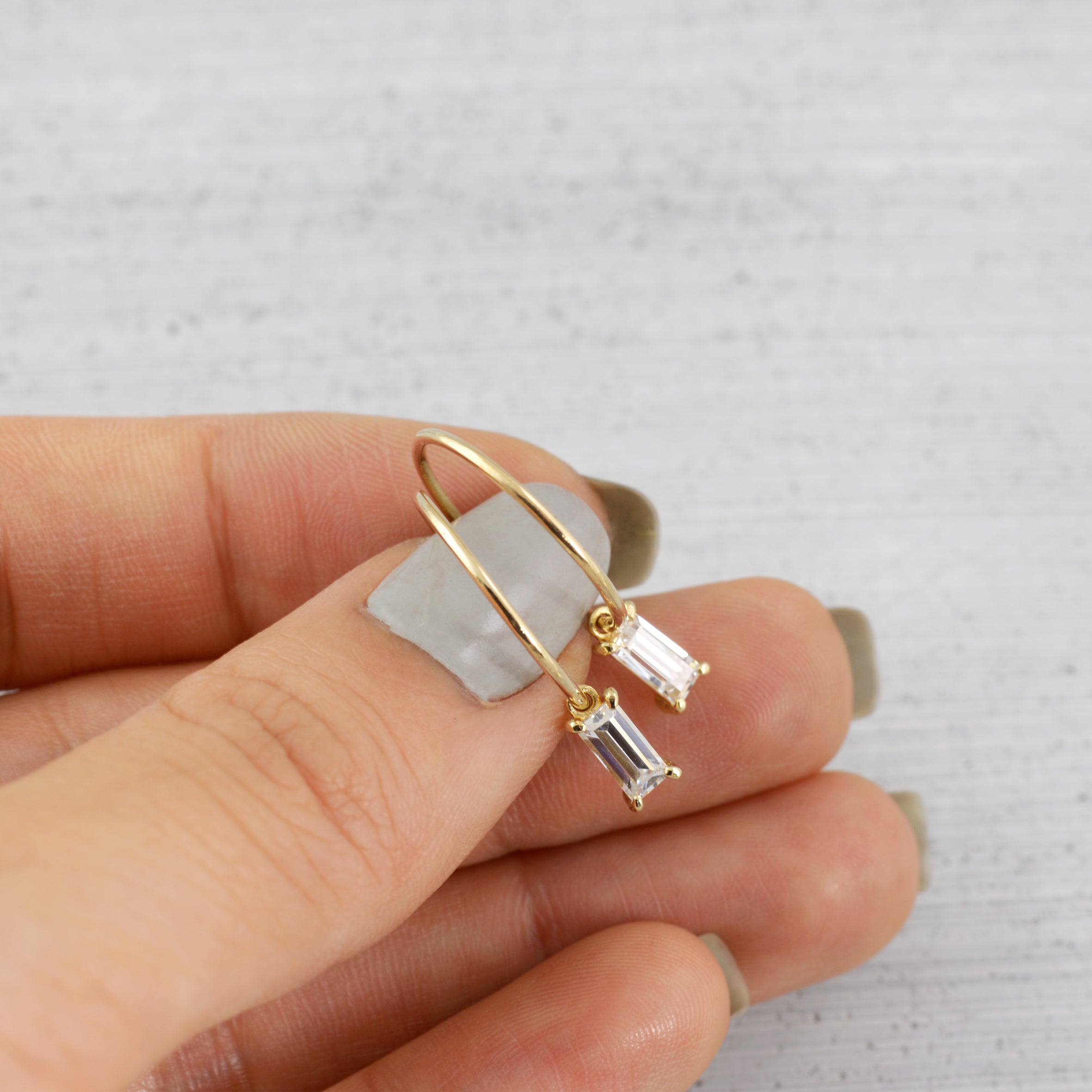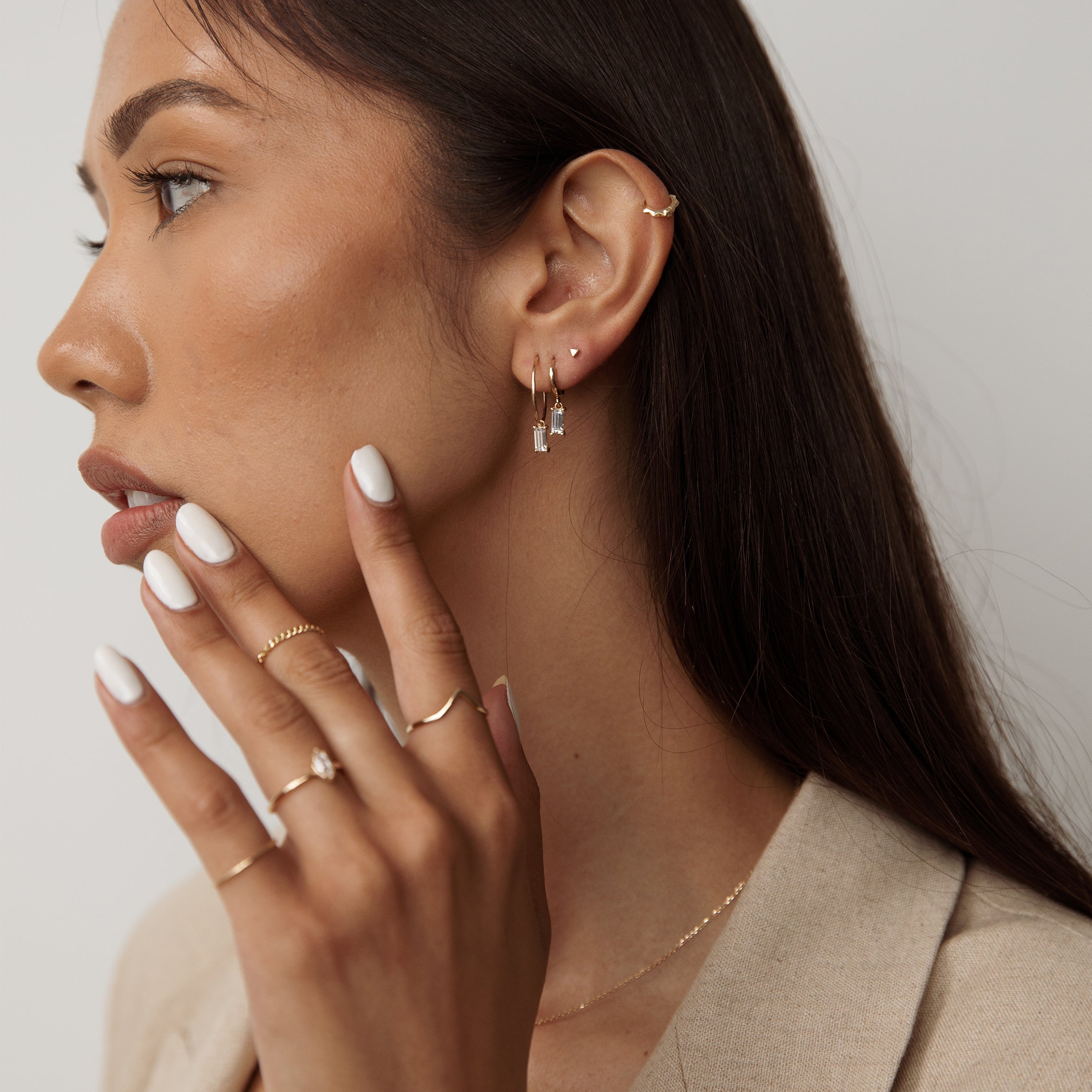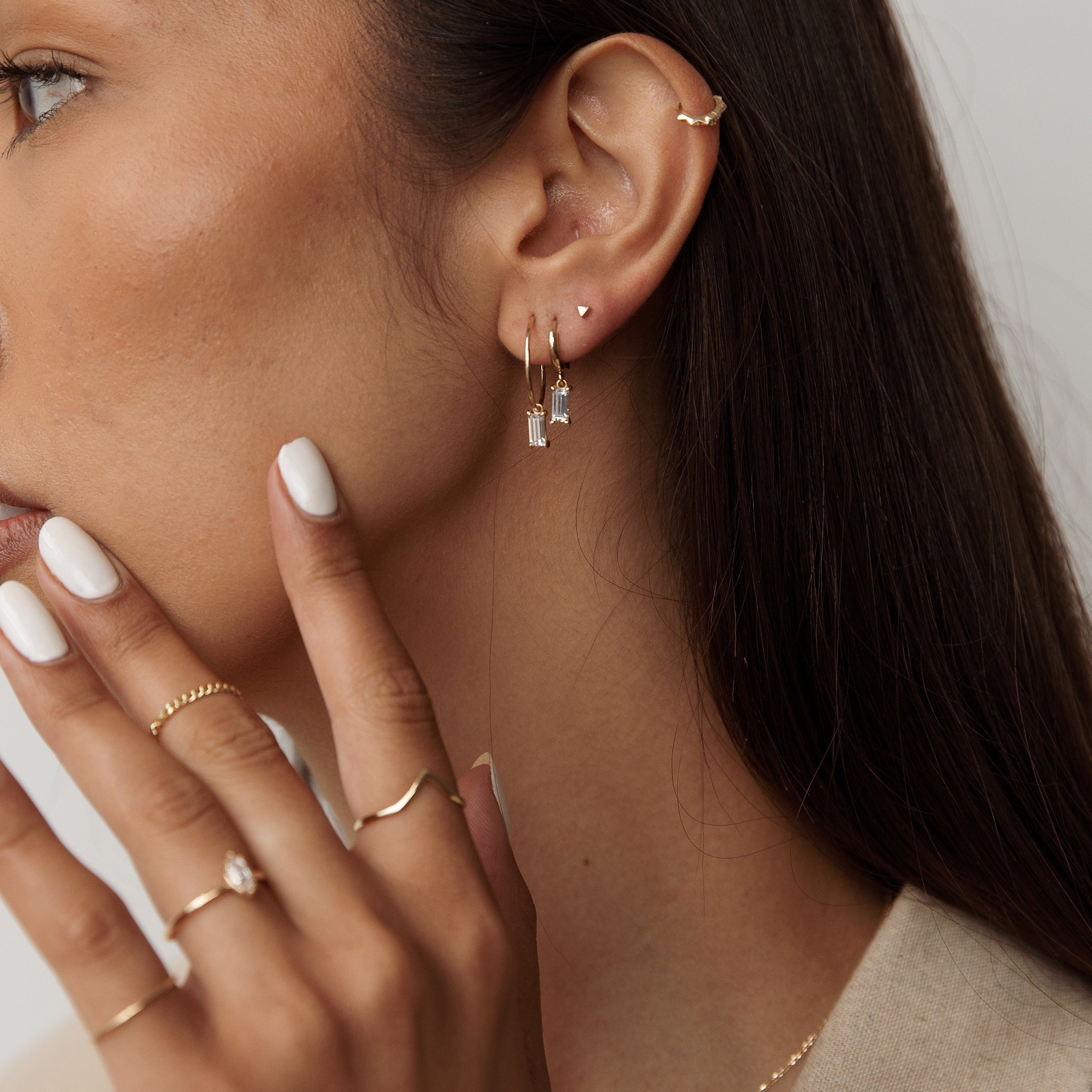 Make a statement in contemporary luxury with our Allure baguette wire hoop earrings.
