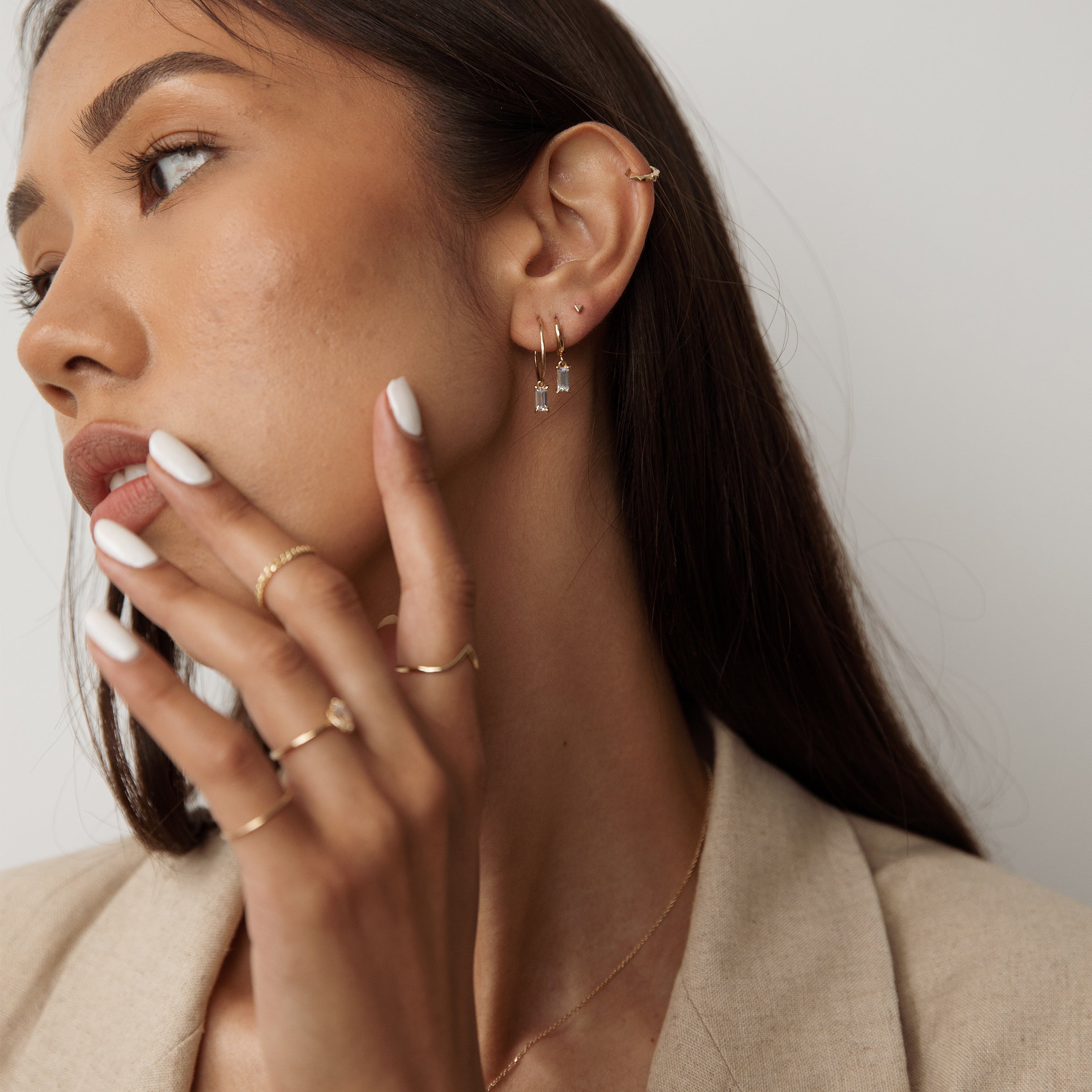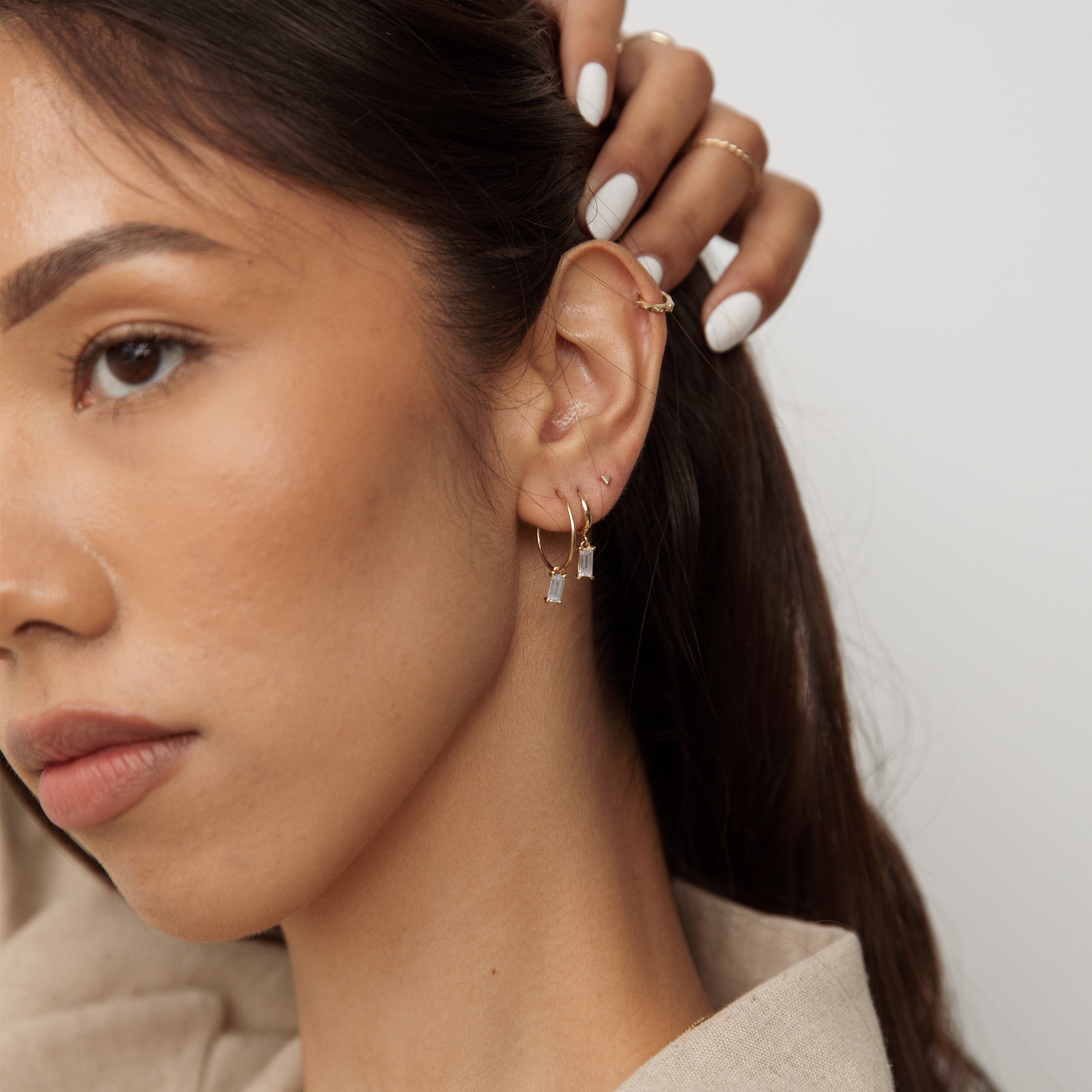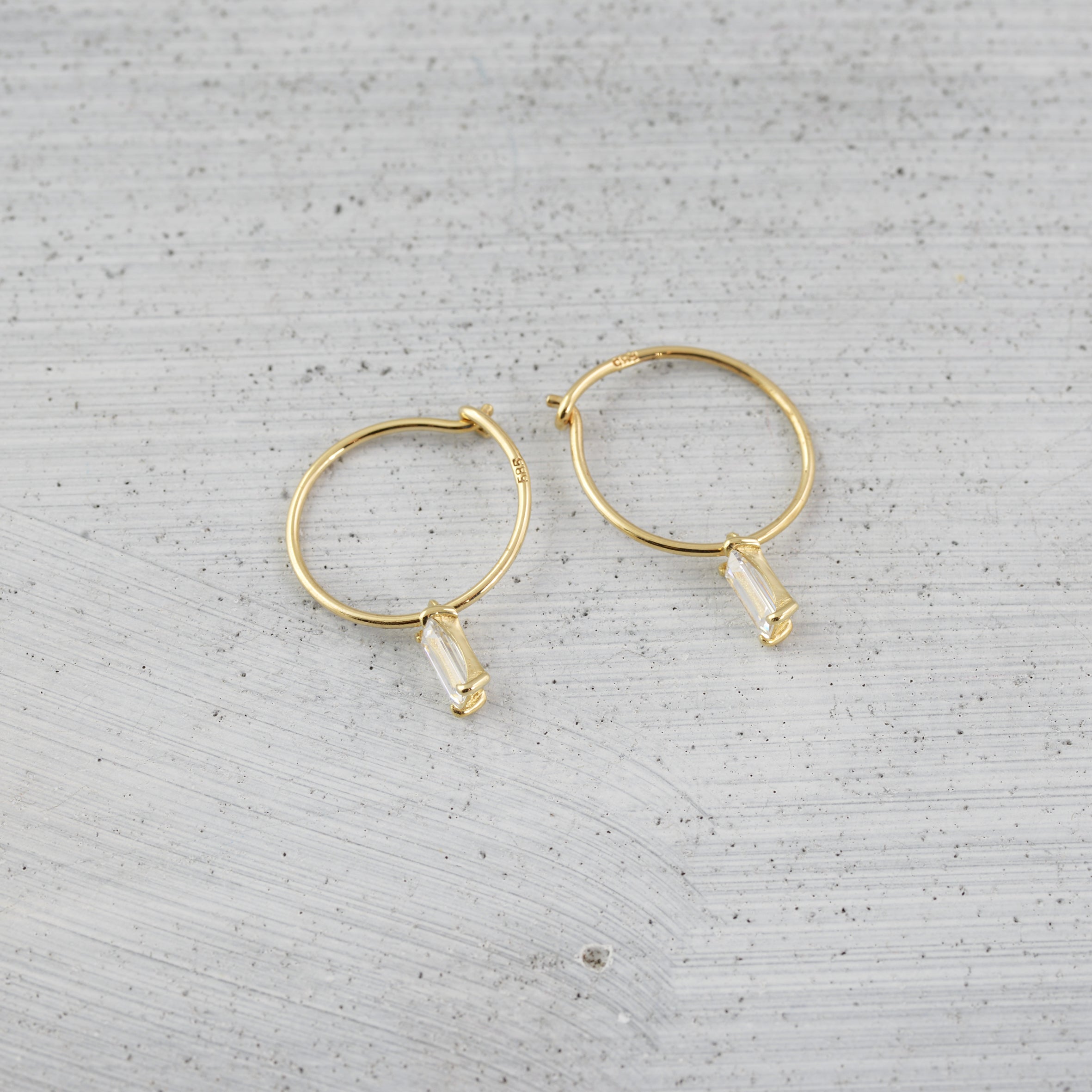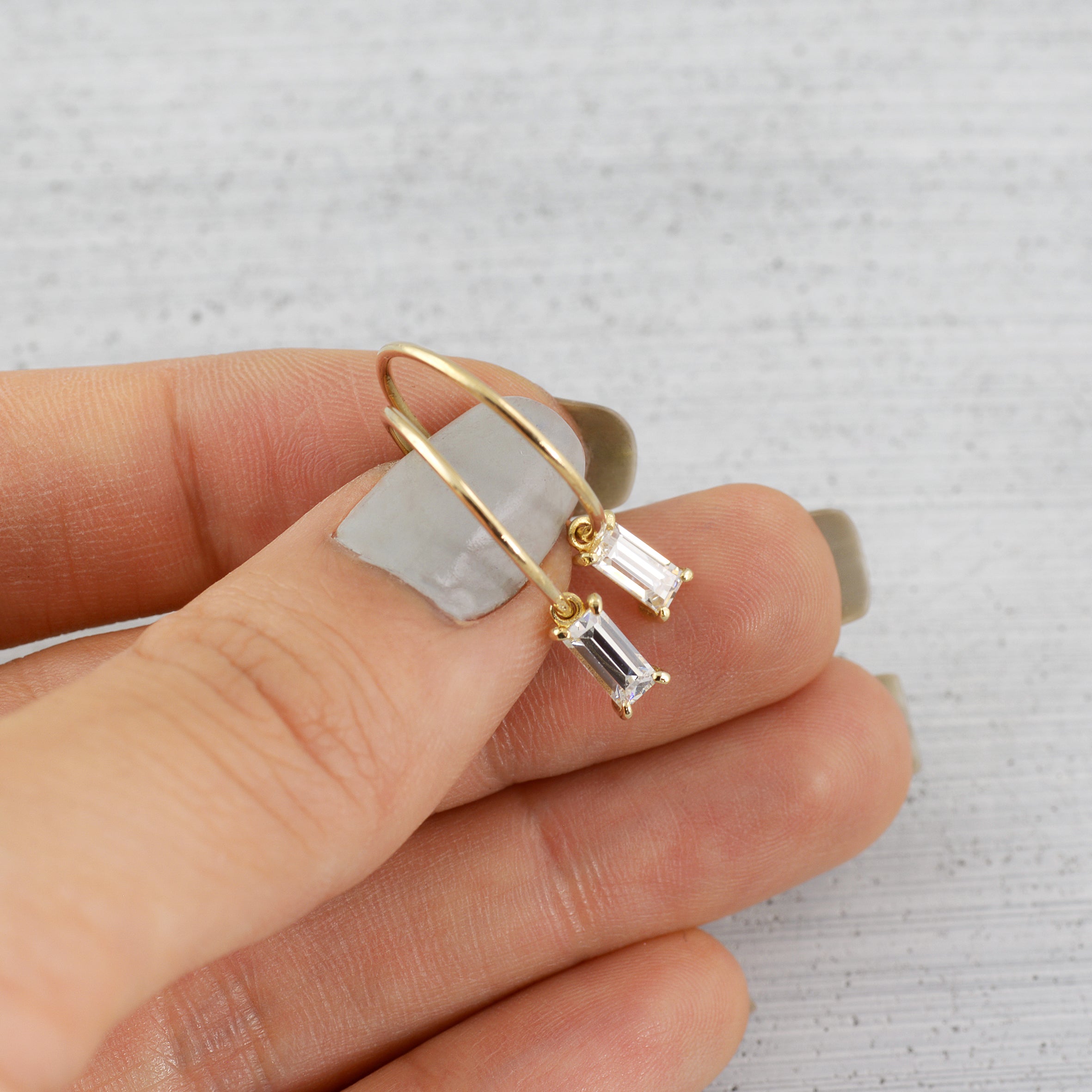 Make a statement in contemporary luxury with our Allure baguette wire hoop earrings.