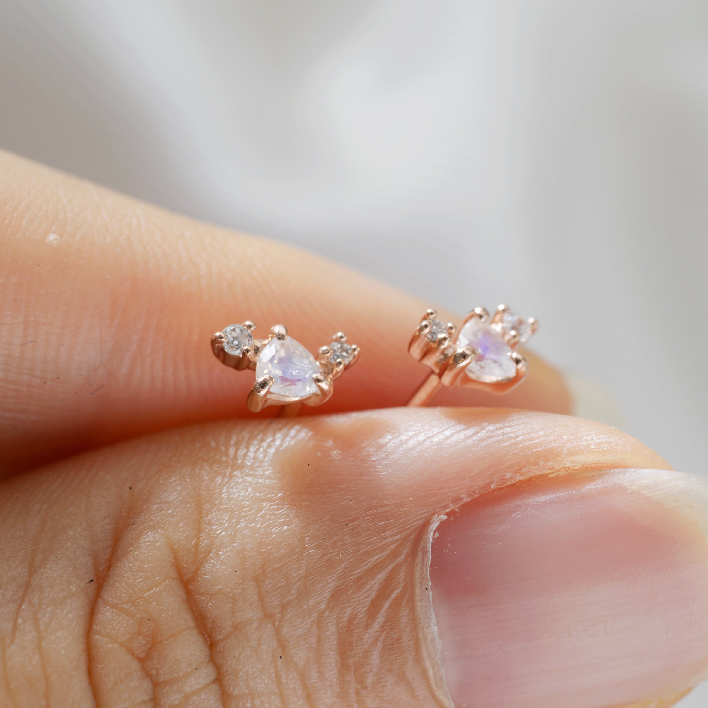 (Main) Teardrop cut: Clear Cubic Zirconia, Rainbow Moonstone.