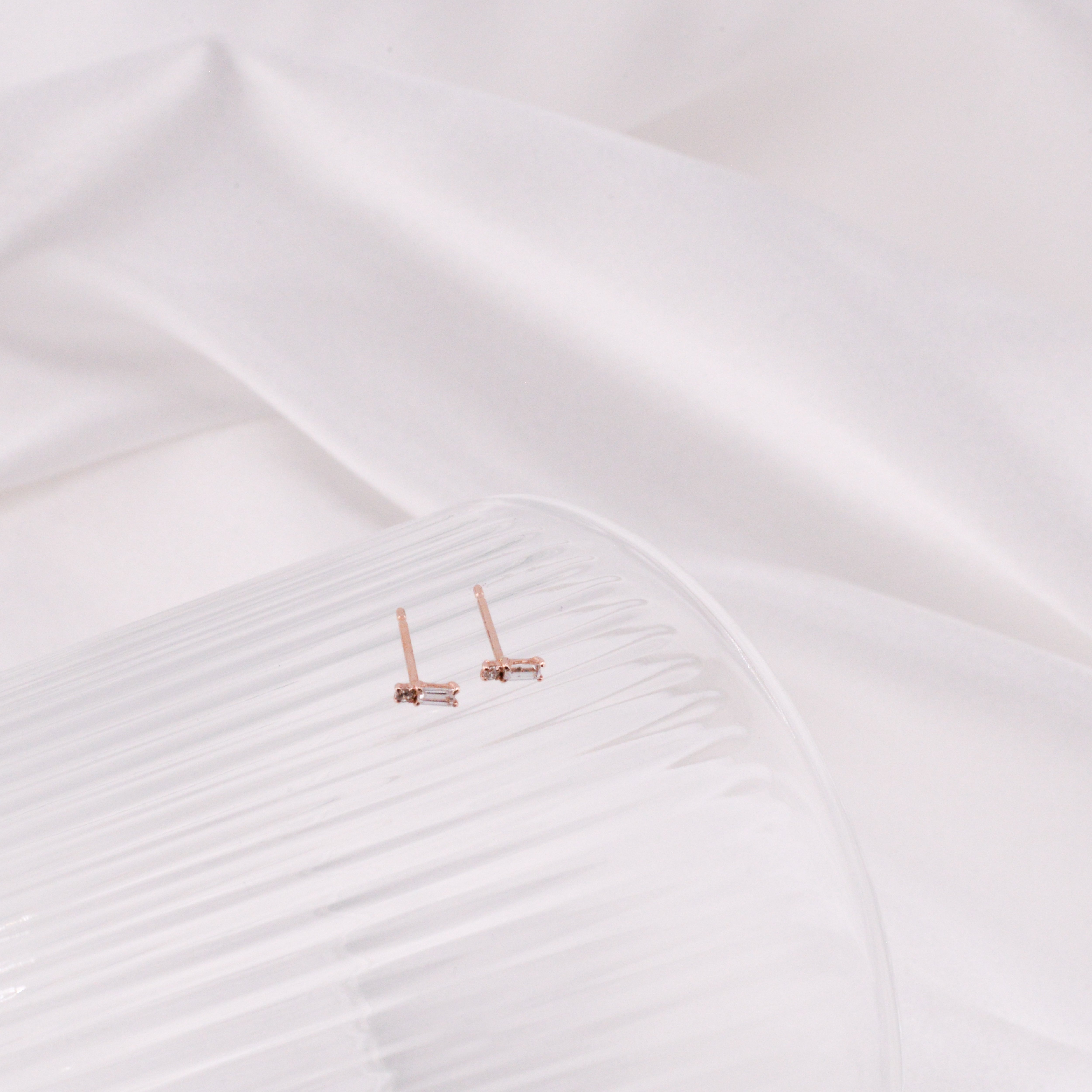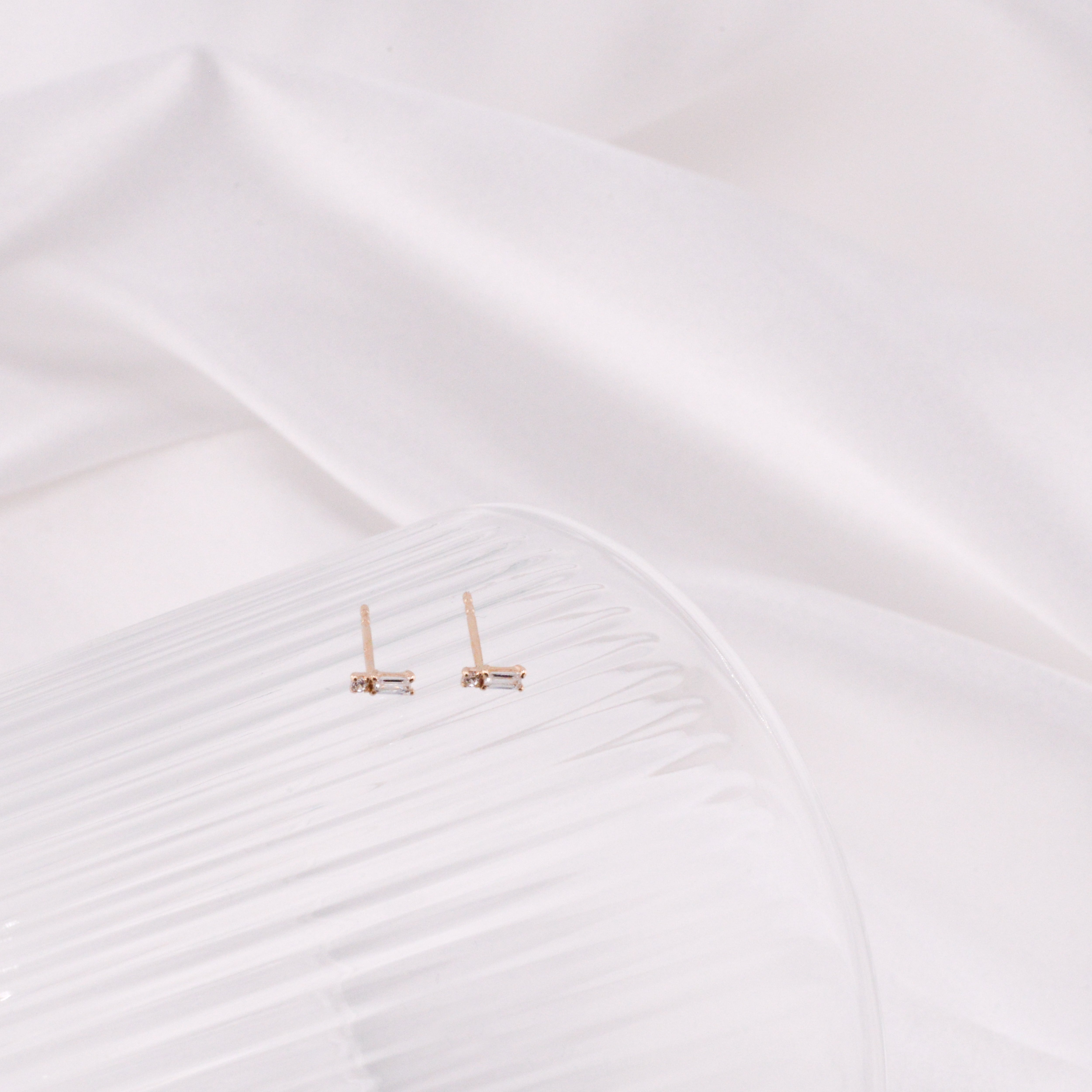 Stone size: approx 3mmx1.5mm baguette cut and 1.4mm round cut stone.