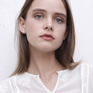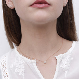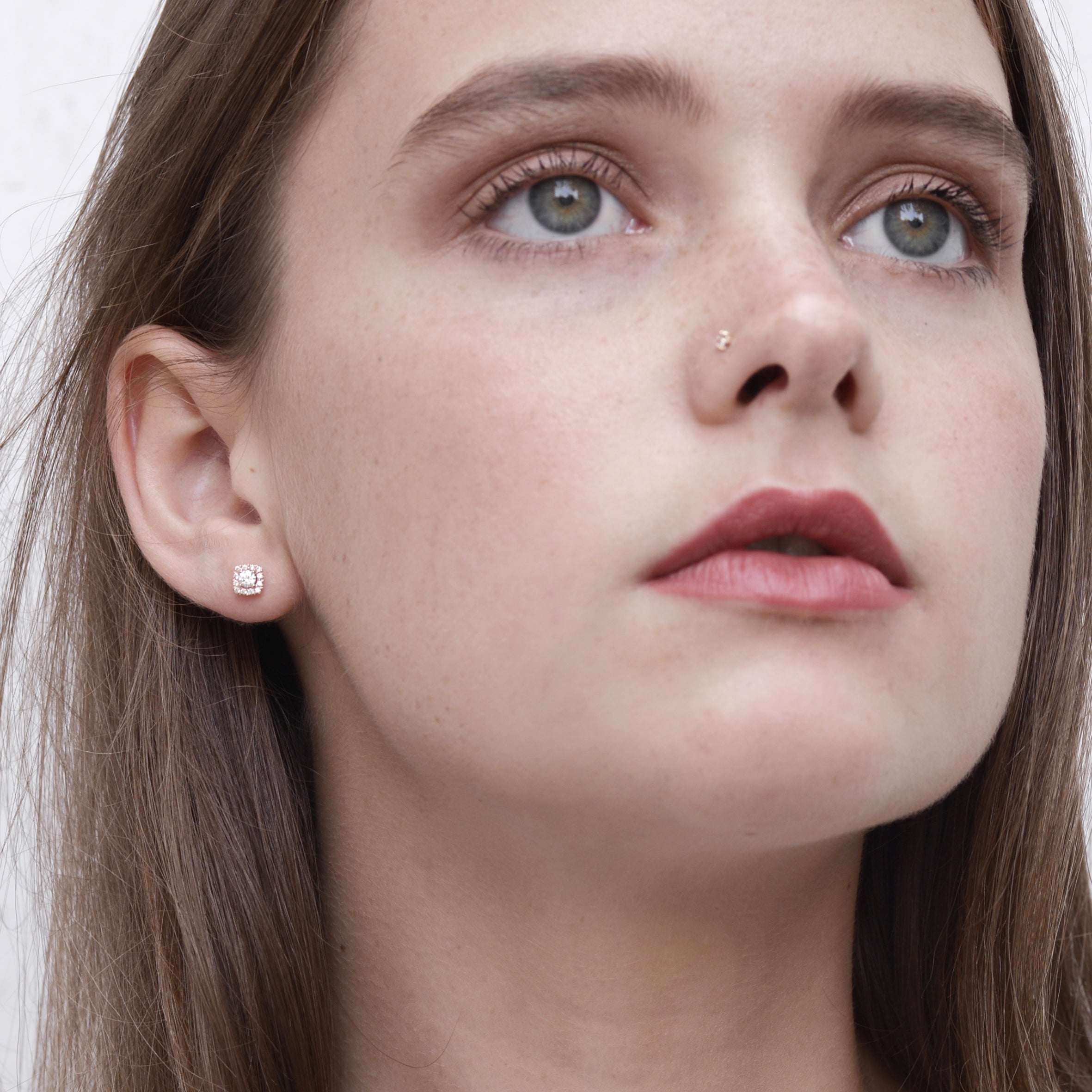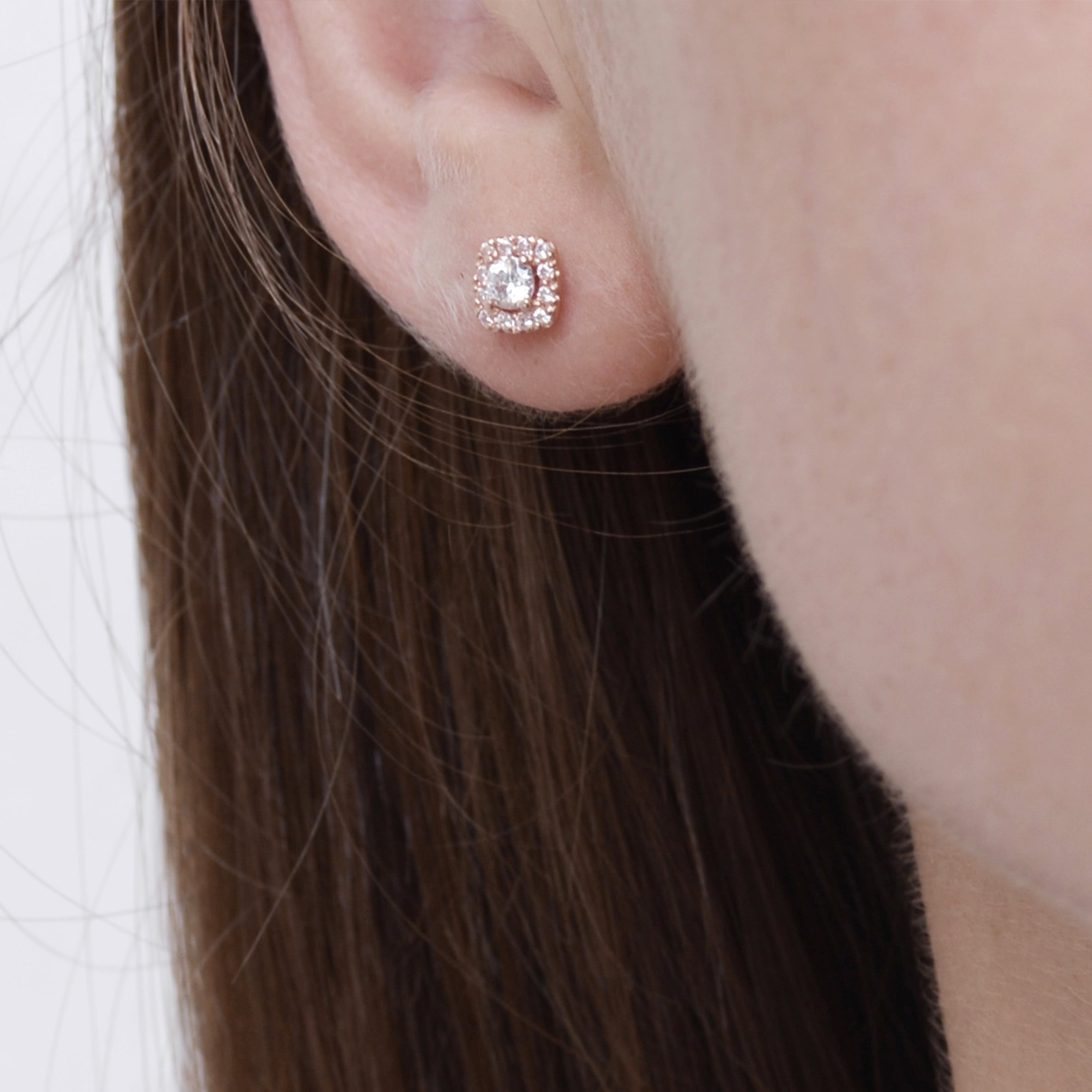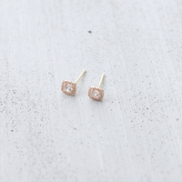 Clear White Cubic Zirconia setting on the 14K gold stud earrings.